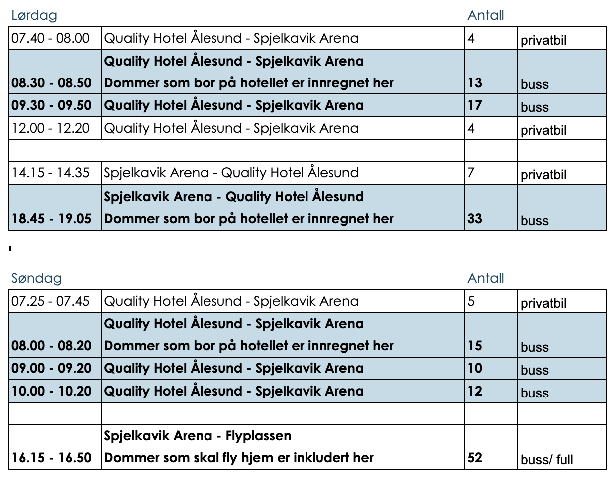 vi har satt opp buss mellom Quality Hotel Ålesund - hallen. Det er ledig på buss avganene 65 kr per person per tur til #963983